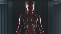 Item 17A, also known equally the Iron Spider Armor, is an armored version of the Spider-Man Suit comprised of nanotechnology. It was created by Tony Stark for Peter Parker to use equally an Avenger, offered to him in 2016 after he prevented Vulture from stealing from a Stark Cargo Plane. Subsequently initially rejecting the suit, Spider-Man was given the adjust two years later during the Infinity State of war, using information technology to survive in infinite and fight Thanos on Titan. The suit, along with Spider-Man, was turned to dust during the Snap, although it was restored when Parker was resurrected past Hulk in 2023 and was used to fight the Outriders during the Battle of Earth.